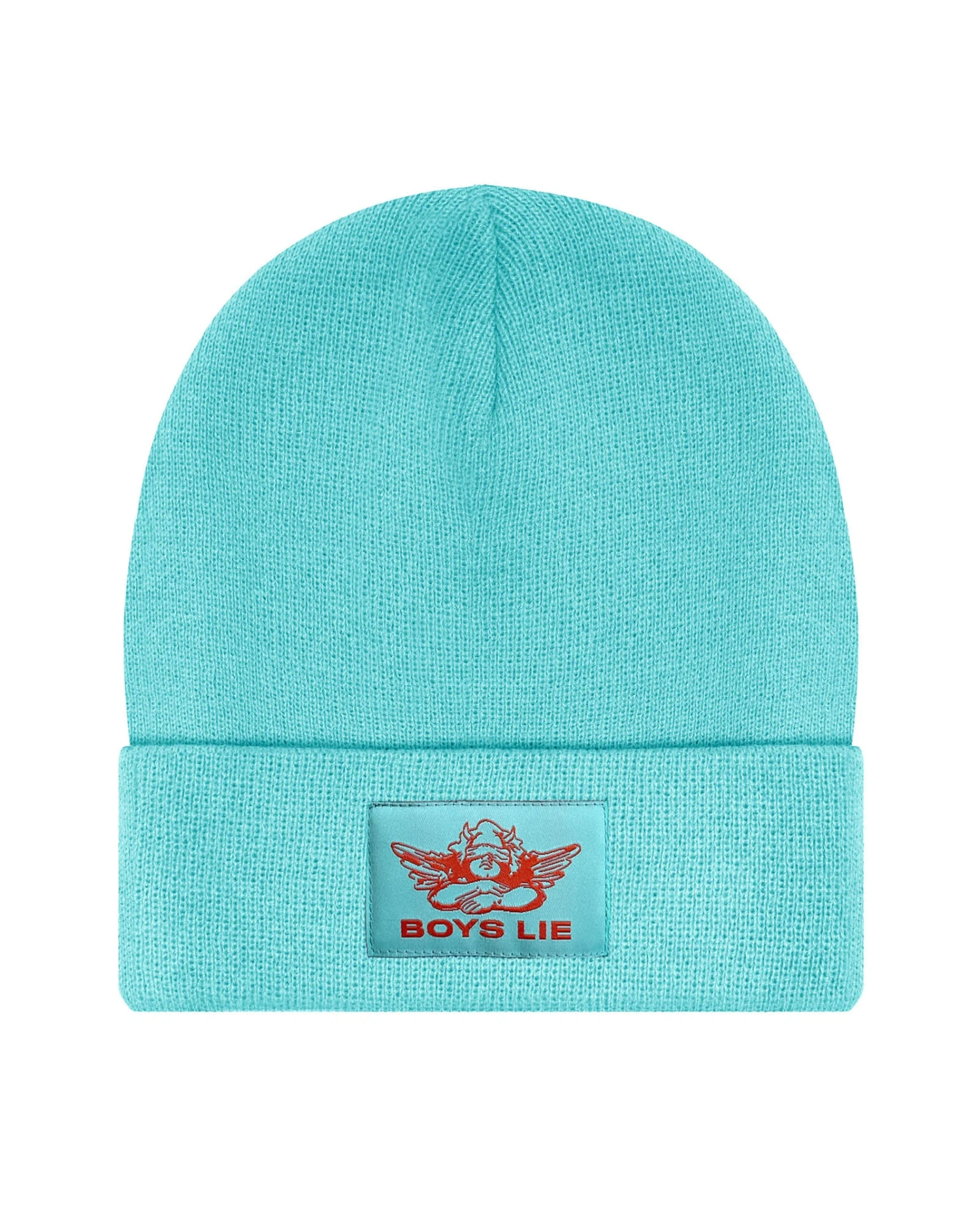 Seafoam green beanie with seafoam Boys Lie logo patch.