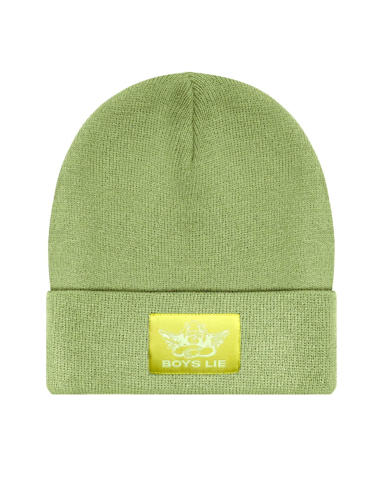 Light green beanie with green Boys Lie logo patch.